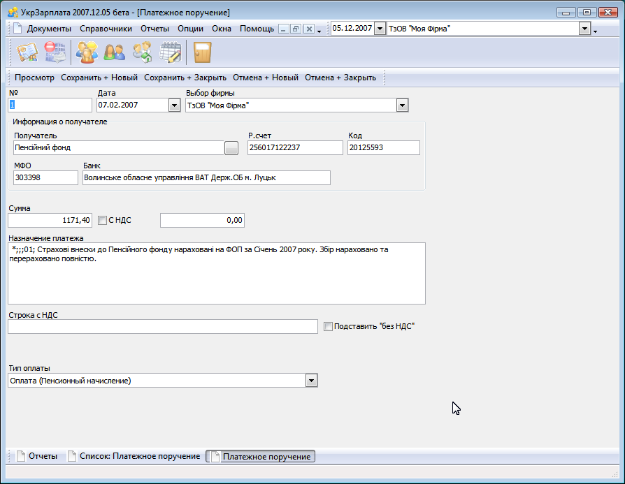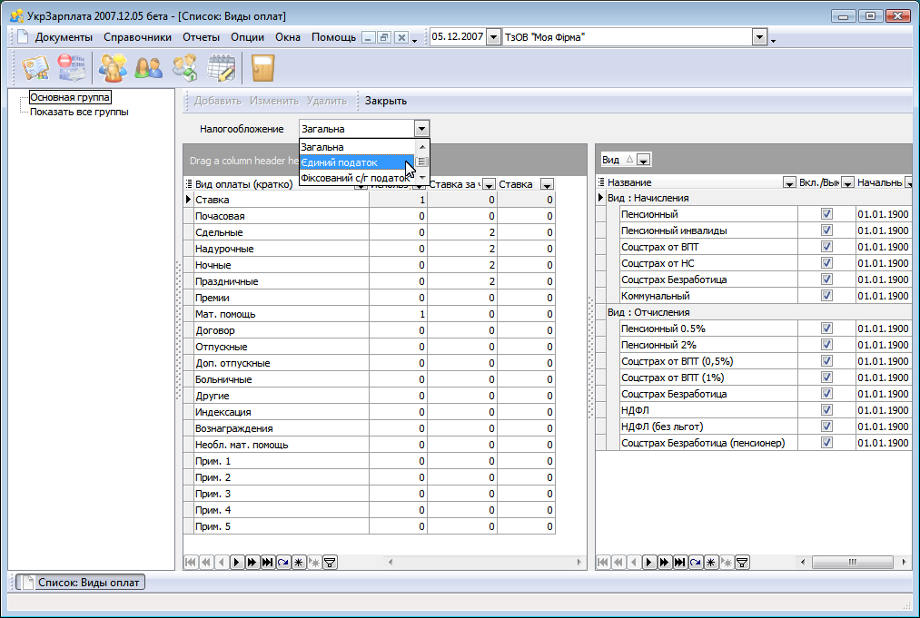 Довідник "Види оплат" з налаштуванням Нарахувань/Утримань
